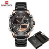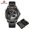 Excellent, the order arrived in exactly one month and 20 days. Before the date set by the platform. Well packaged. The watch is of excellent quality like most of the ones offered by the Naviforce brand; it looks like a high-quality expensive watch. In my case, I ordered it without a box, so it arrived in a kind of plastic envelope along with its respective user manual, a soft cloth to clean it, and as a gift, it also came with the essential tool to remove the links. Which comes from 10. In black it looks very nice, I don't know how they will look with other colors. It works wonderfully and I recommend it. The brand offers a wide variety of models that attract a lot of attention, and for their price, they are truly worth it. It was what I expected 10/10